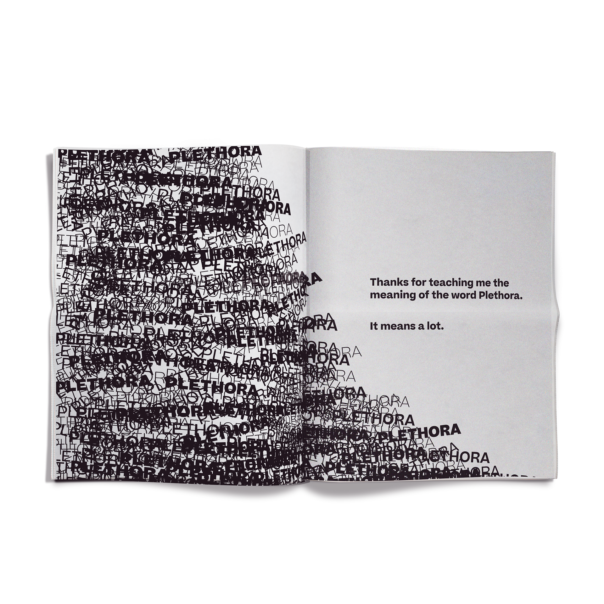 Plethora, c’est le nom d’un journal enfermé dans une capsule spatio-temporelle afin qu’elle soit destinée à la lecture des générations futures afin de le faire prendre conscience du mode de vie surconsommateur que nous avons actuellement sans forcément nous en rendre compte : de l'achat compulsif de vêtements de fast-fashion ou de la prise ininterrompue de médicaments en passant par une suralimentation de nourriture classée comme étant "saine"; Plethora cherche à sensibiliser les prochaines générations sur le surplus de tout ce qui nous entoure, nous apprendre à prendre conscience que la modération et l'équilibre sont finalement ce qui nous apaise le plus et nous aide à avancer.